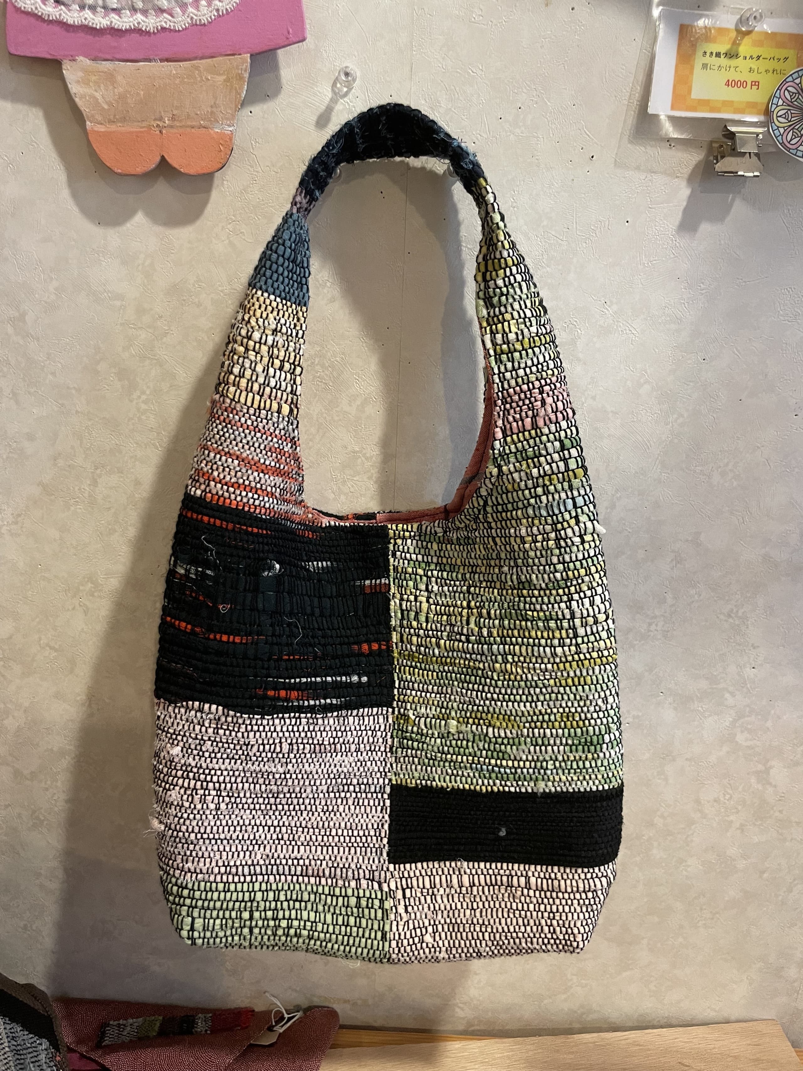 HOME | 製作販売活動 | さき織り トートバッグ 円 スマホポーチ 円 手さげバッグ 円 ショルダーバッグ 円 半円ポーチ 円 数珠入れ 円 ミニバッグ 円 テッシュポーチ 円 四角いミニバッグ 円 タペストリー 円 小鳥コースター 円