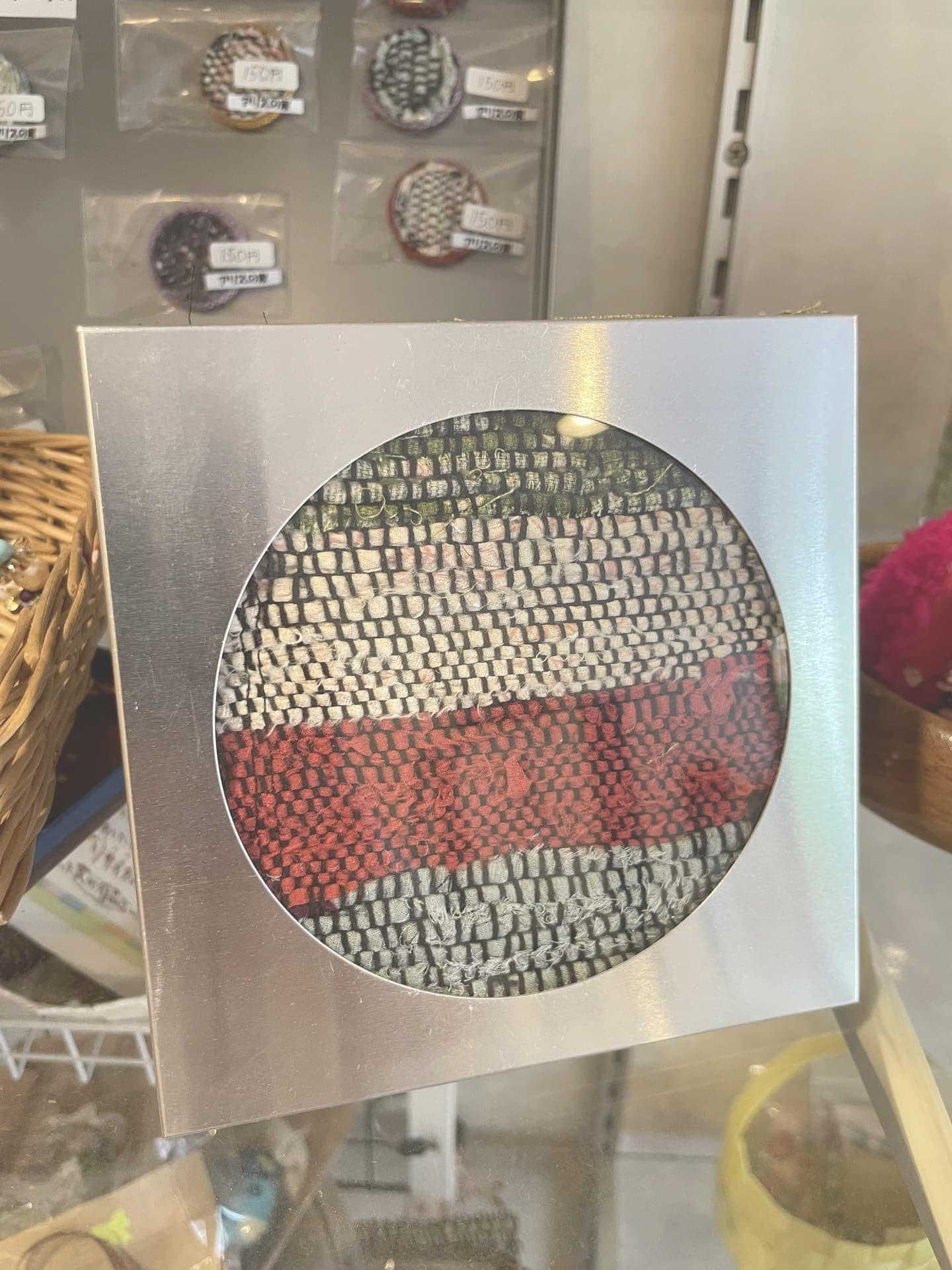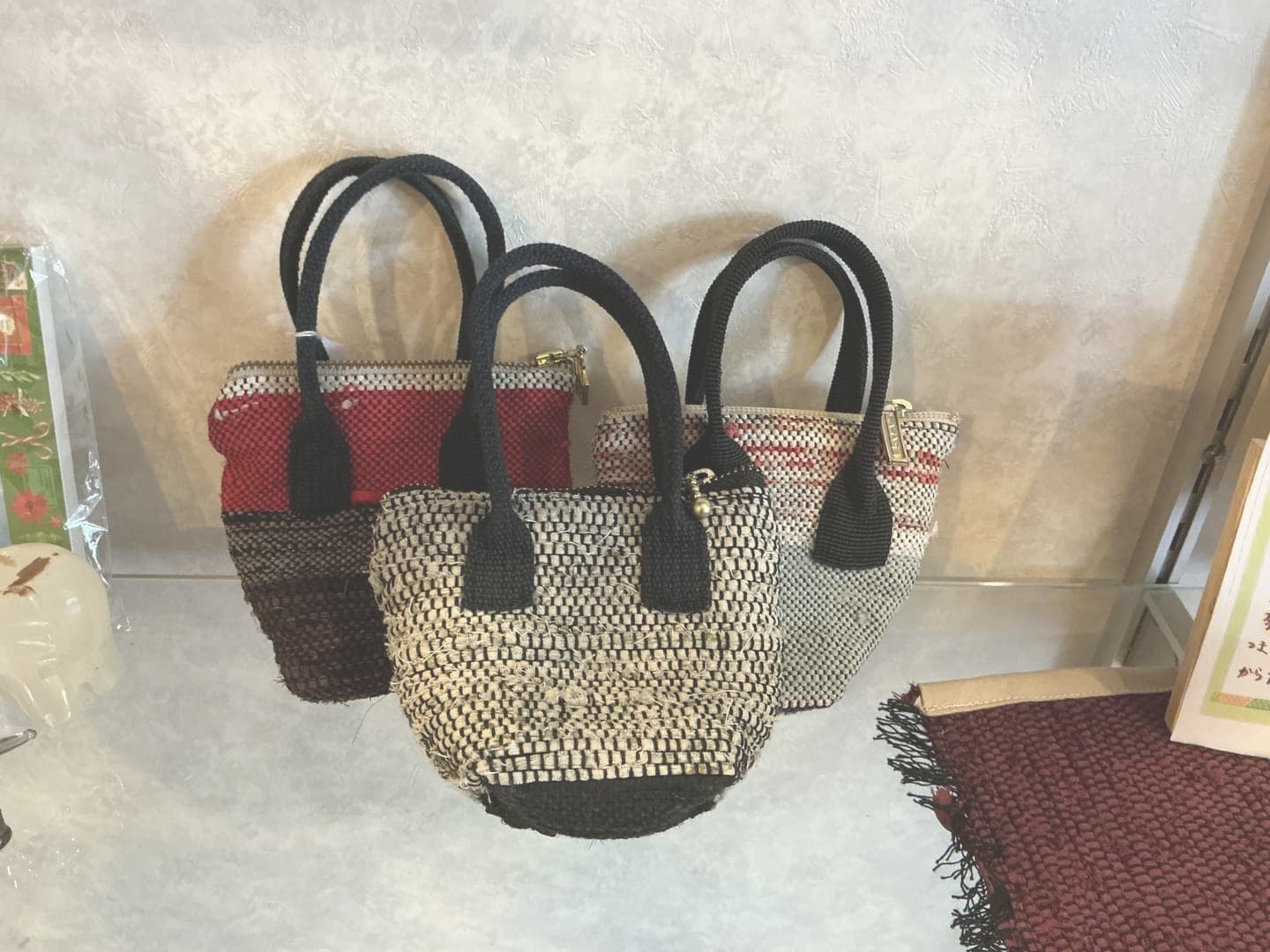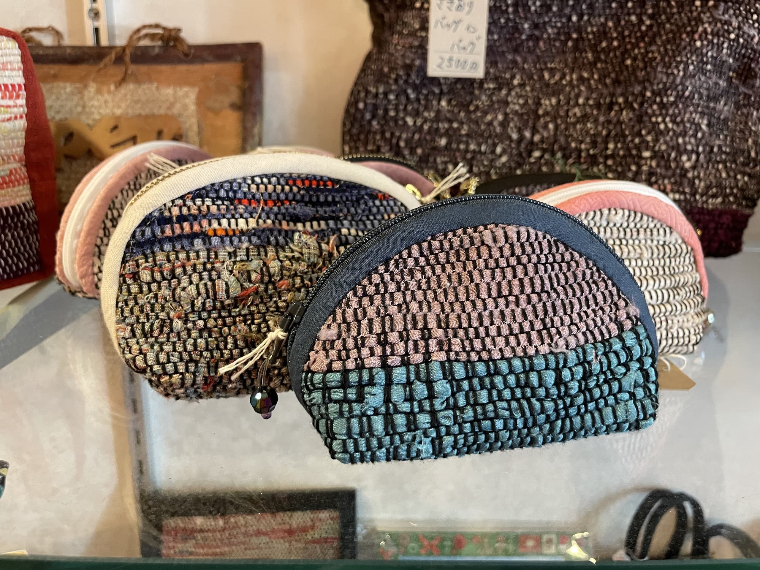 HOME | 製作販売活動 | さき織り トートバッグ 円 スマホポーチ 円 手さげバッグ 円 ショルダーバッグ 円 半円ポーチ 円 数珠入れ 円 ミニバッグ 円 テッシュポーチ 円 四角いミニバッグ 円 タペストリー 円 小鳥コースター 円